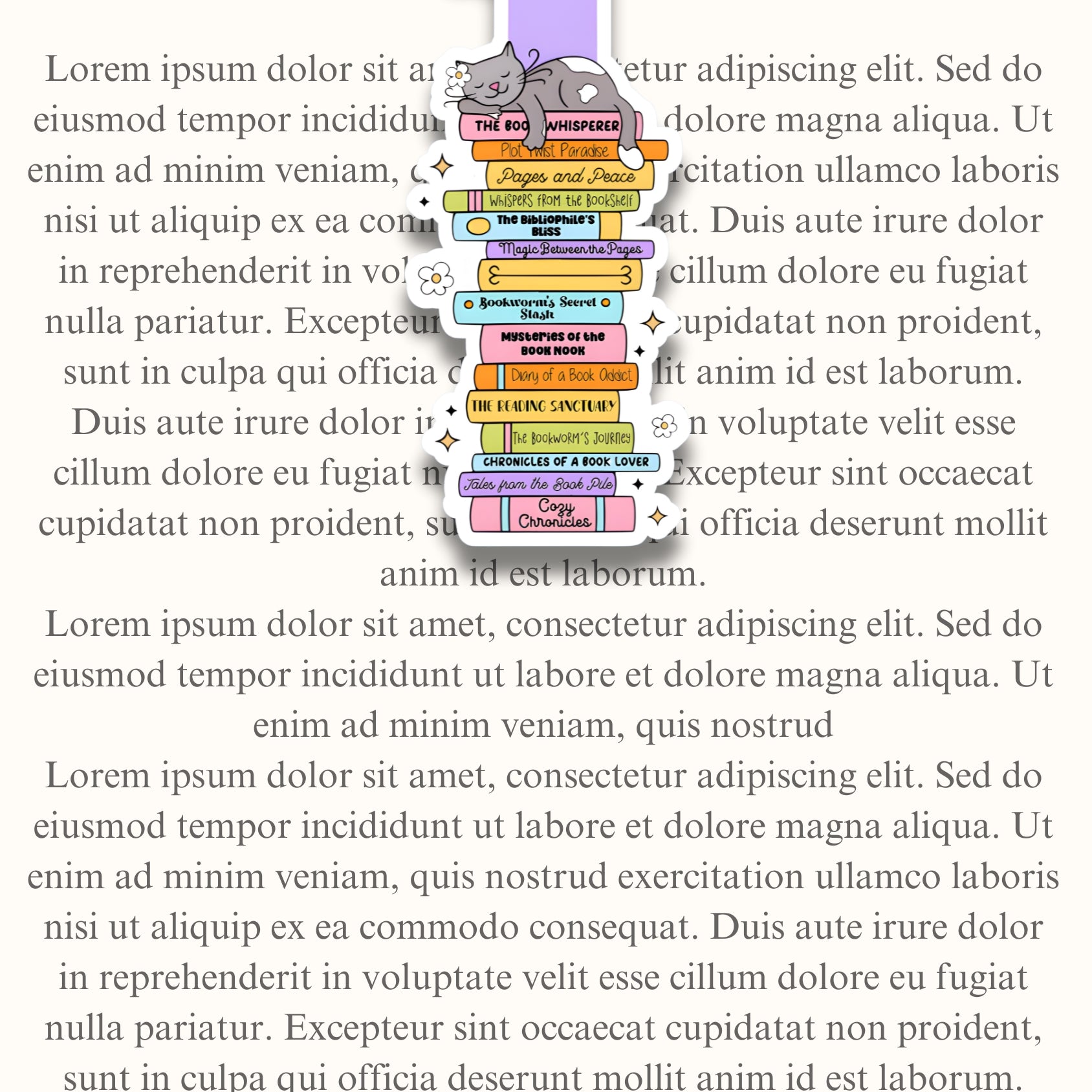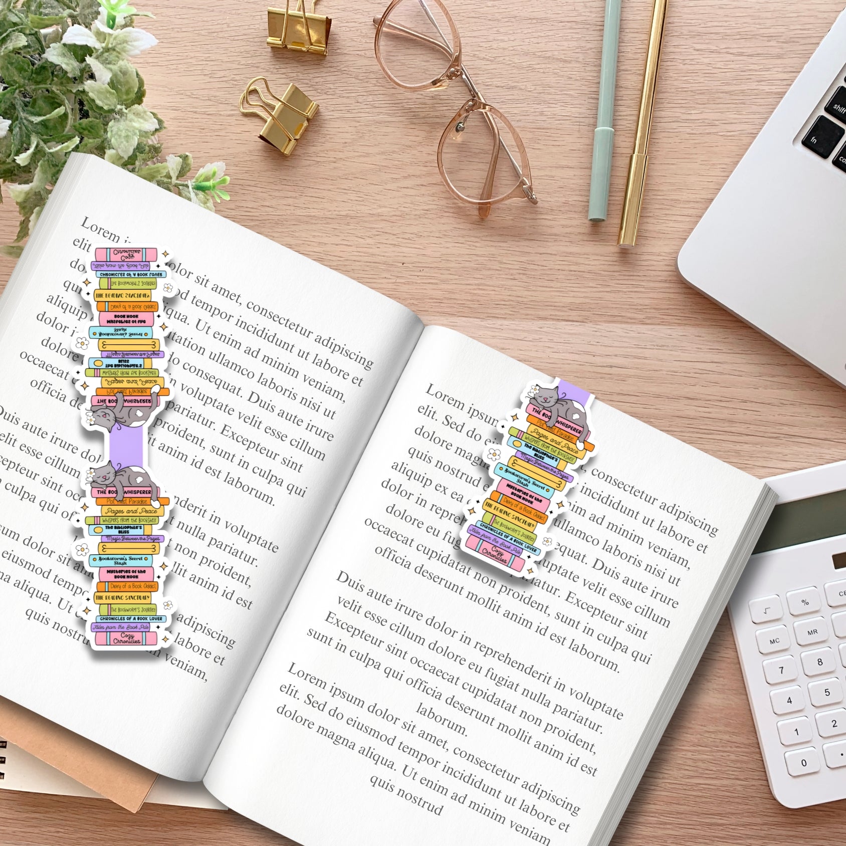 This magnetic bookmark features a cute cat lounging on a tall stack of books. Printed on high-quality magnetic paper and topped with an Avery clear laminating sheet, this bookmark is slim, lightweight, and perfect for keeping your place while adding a playful touch to your reading experience.