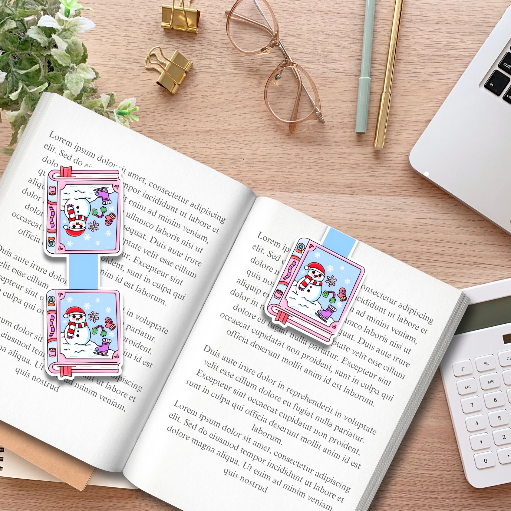 This completely handmade magnetic bookmark features a cozy winter-themed book design, complete with snowy scenery and a cheerful snowman. Printed on high-quality magnetic paper and topped with an Avery clear laminating sheet, this bookmark is slim, lightweight, and perfect for adding a festive touch to your reading during the colder months.