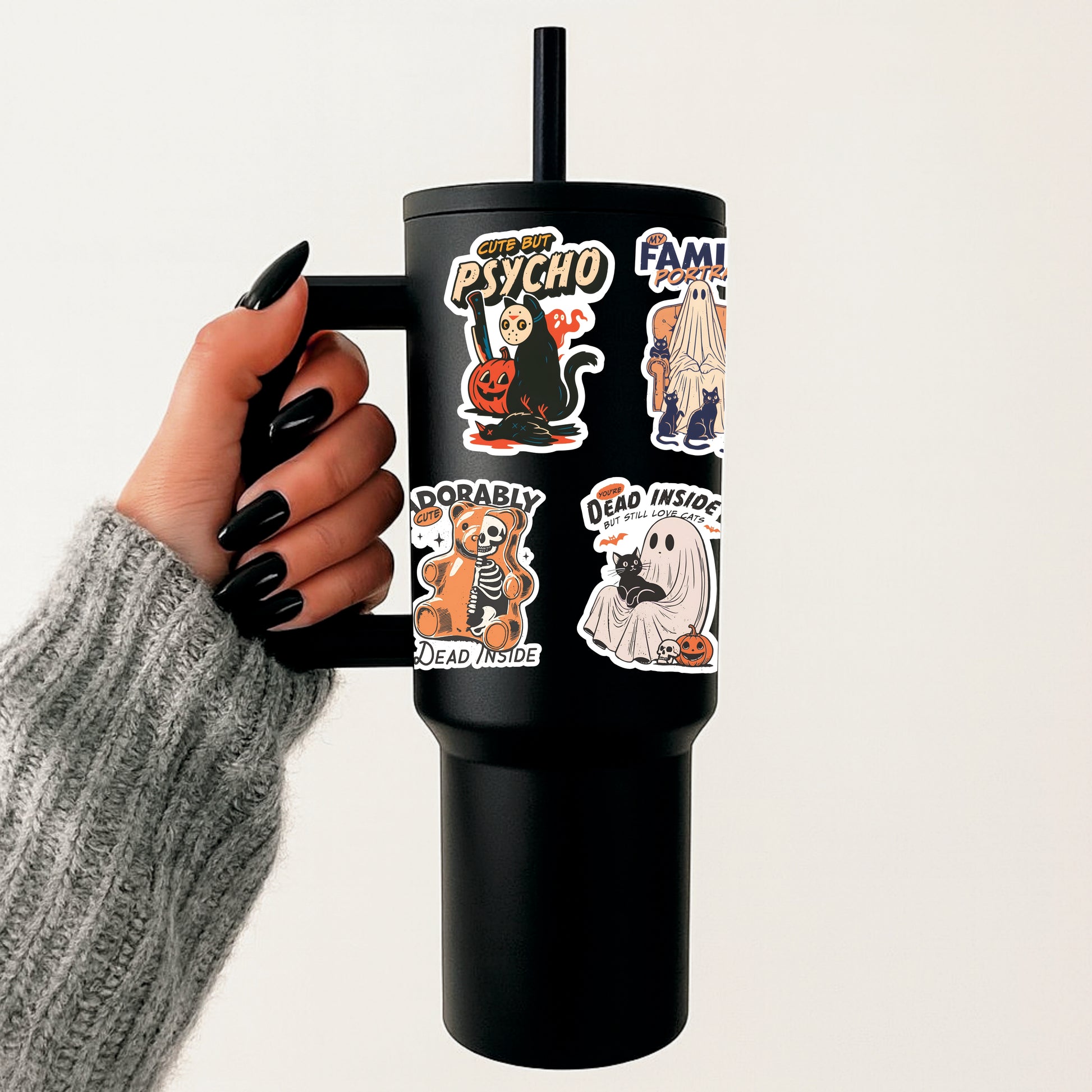 A creepy-cute cat sticker for anyone who’s equal parts adorable and terrifying!