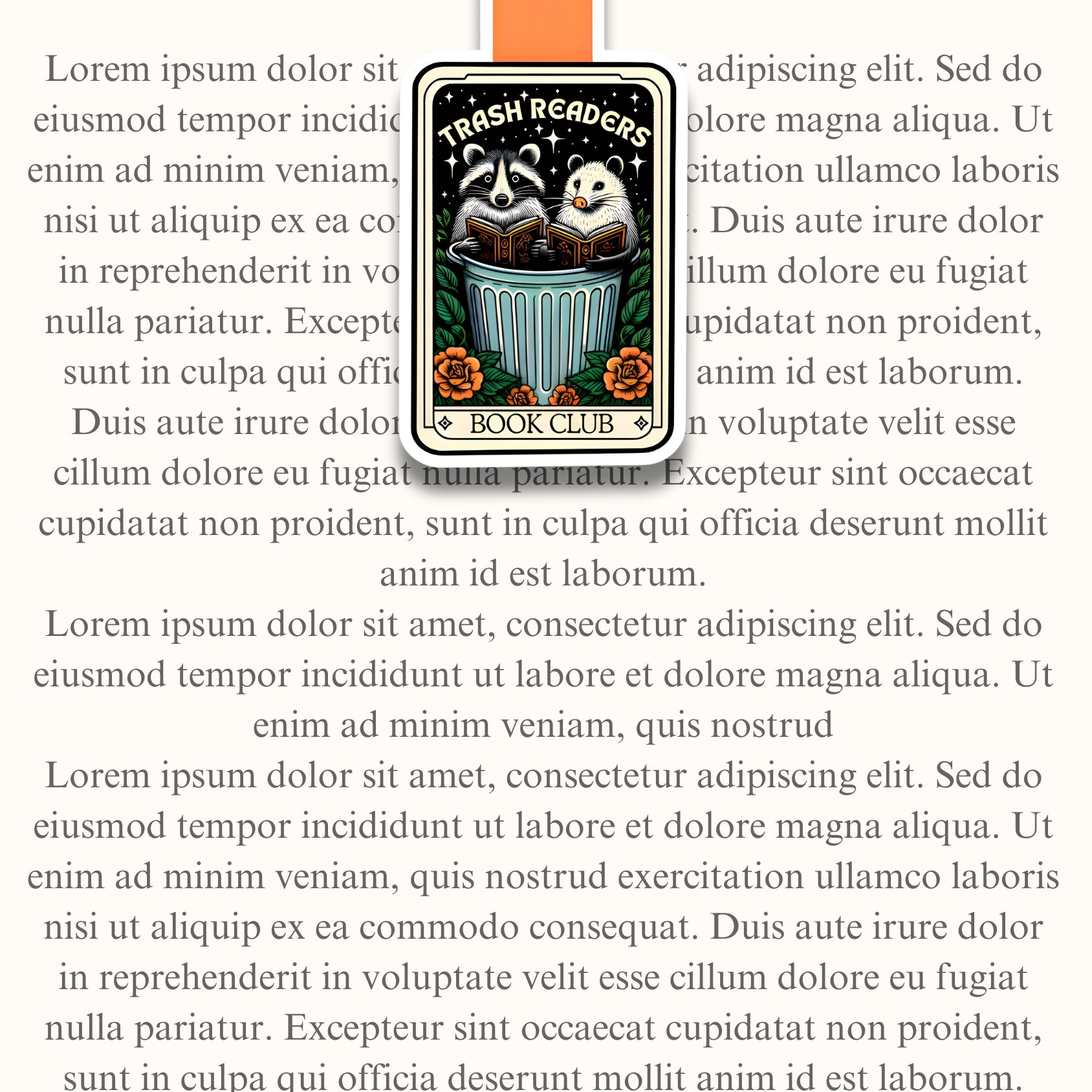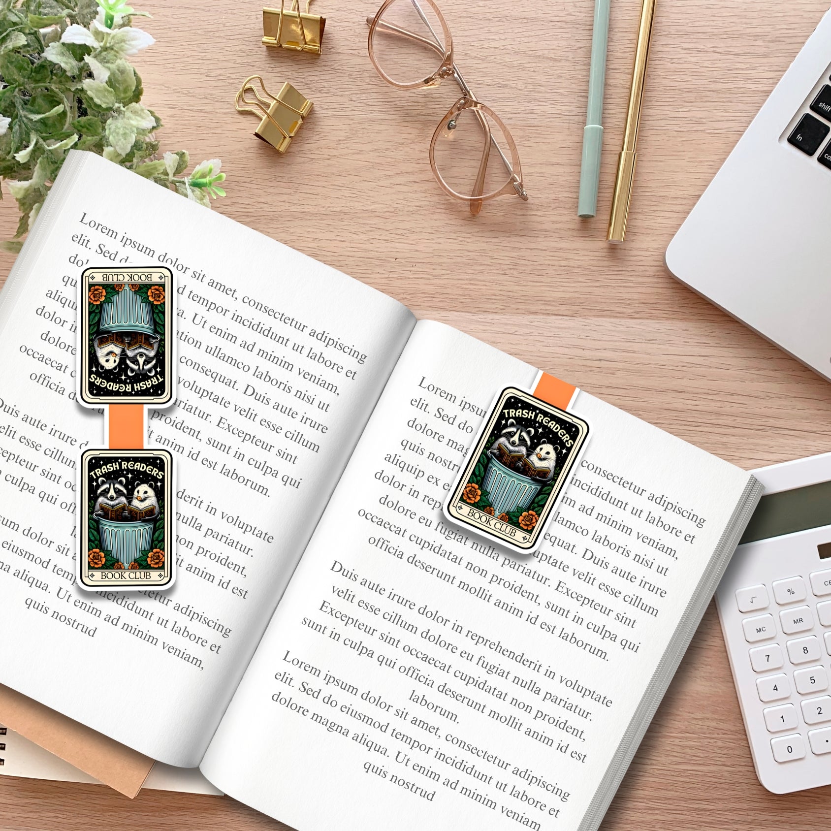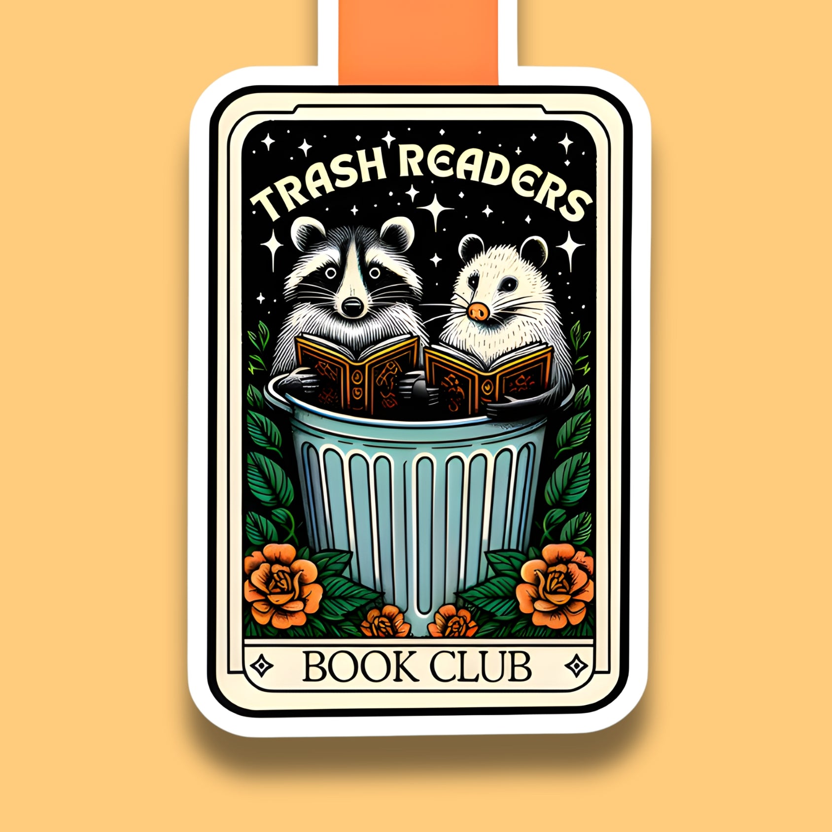 This completely handmade magnetic bookmark features a playful skunk and possum sitting in a trash can with the text “Trash Readers Bookclub.” Printed on high-quality magnetic paper and topped with an Avery clear laminating sheet, this bookmark is slim, lightweight, and perfect for keeping your place while adding humor and personality to your reading experience.