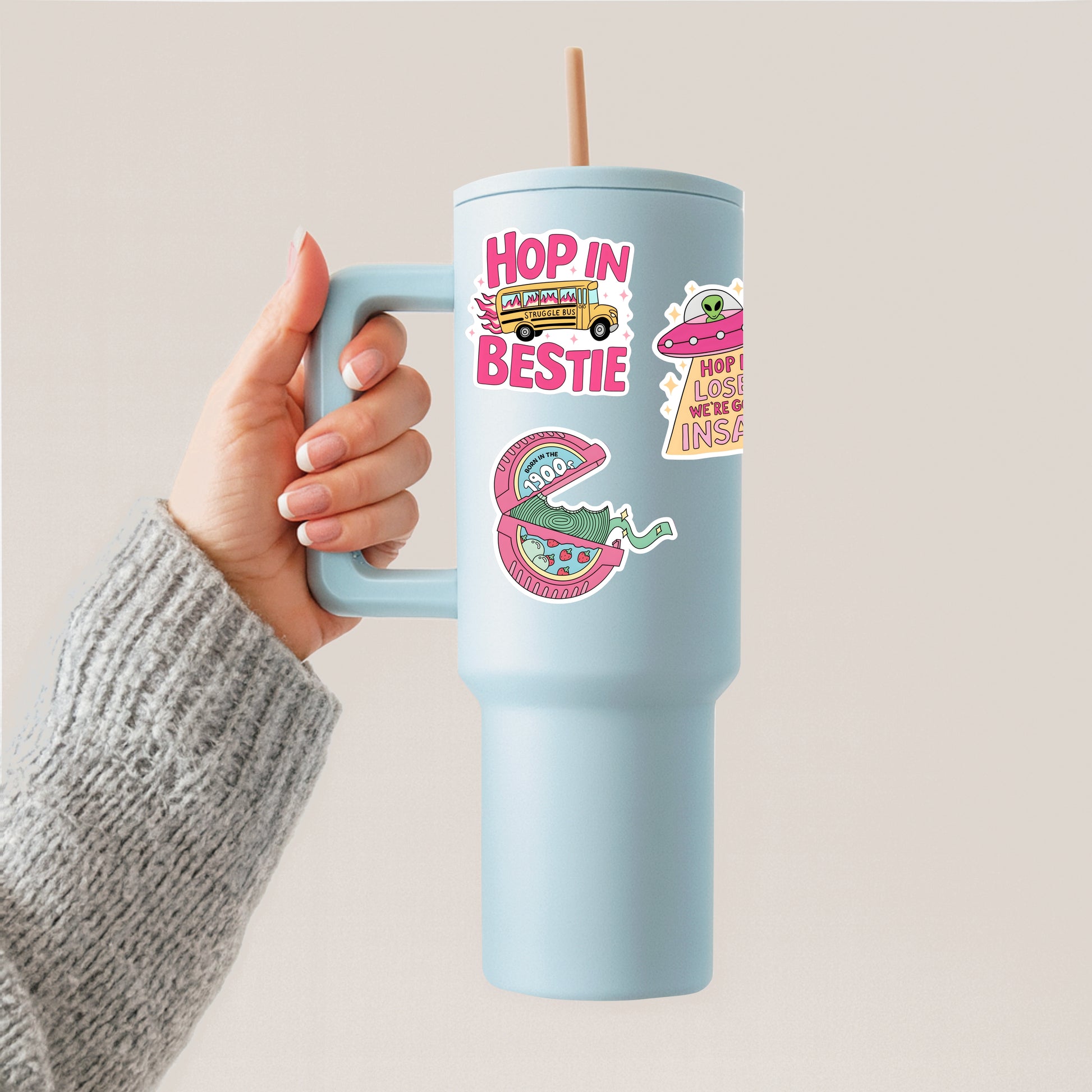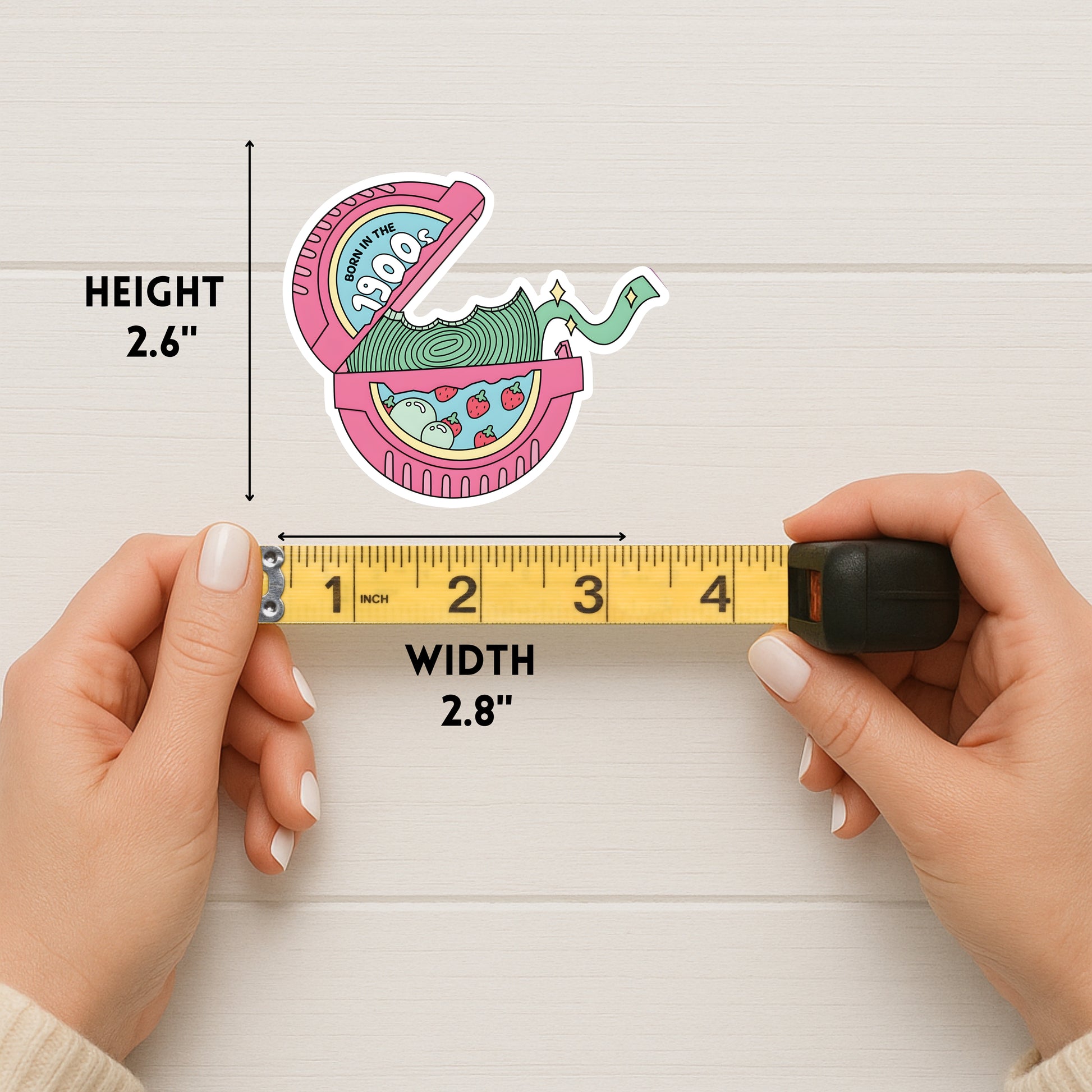 A handmade, nostalgic sticker inspired by the classic rolled-up gum we all begged for at the store. Featuring bright retro colors and the phrase “Born in the 1990’s,” this design is perfect for anyone who grew up in the best decade — full of neon, Nickelodeon, and questionable fashion choices.