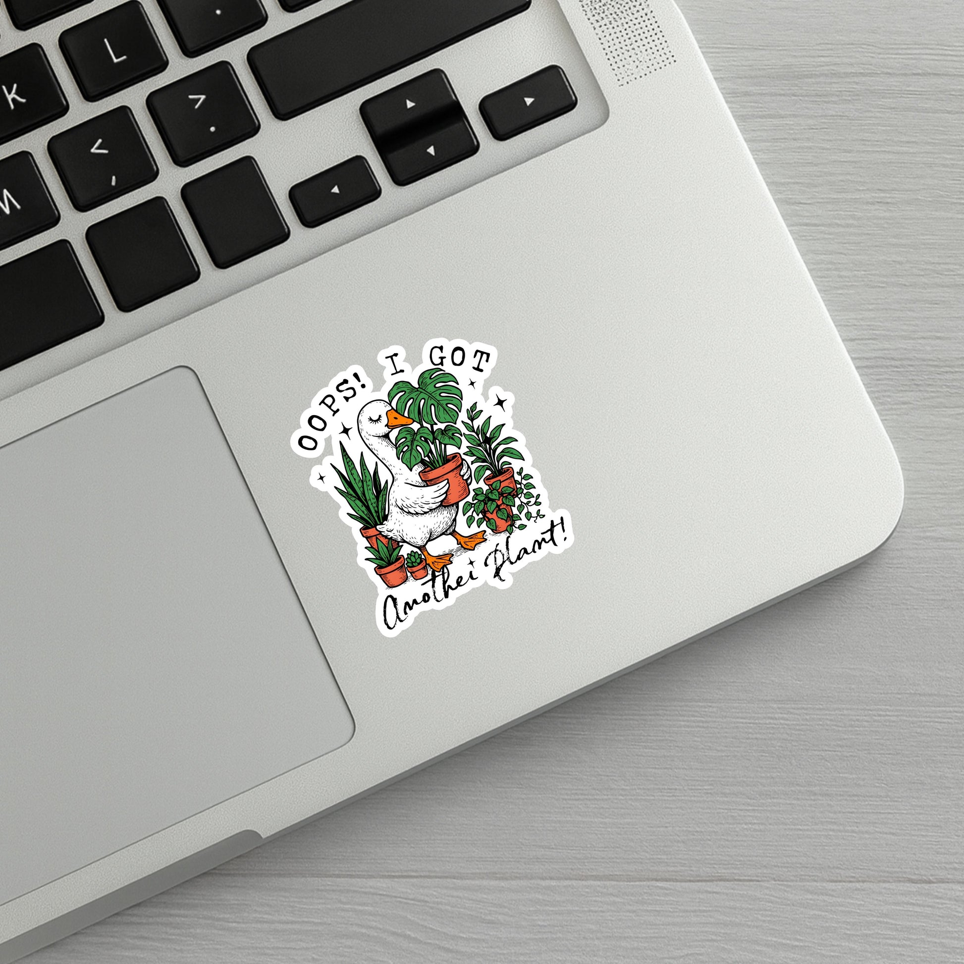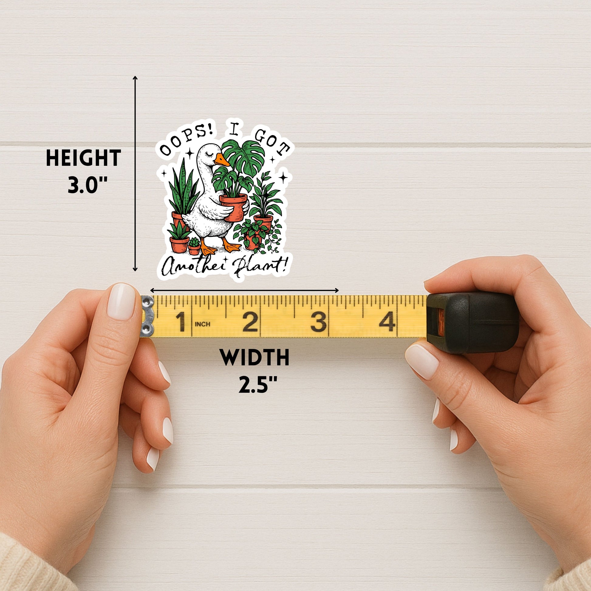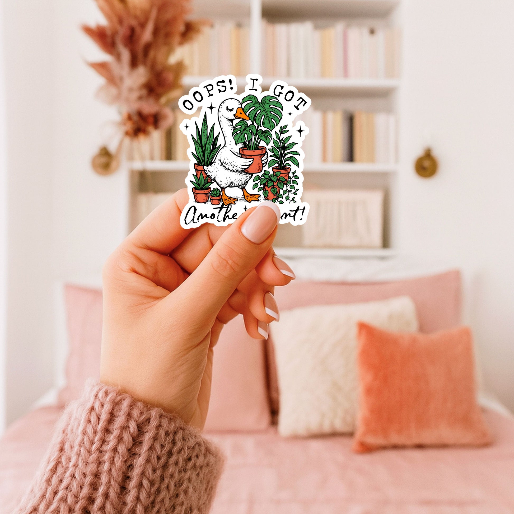 A handmade, adorable sticker featuring a duck holding a potted plant surrounded by more greenery — because one more plant never hurts, right? Perfect for plant parents, gardeners, and anyone who can’t resist adding just one more to their collection.