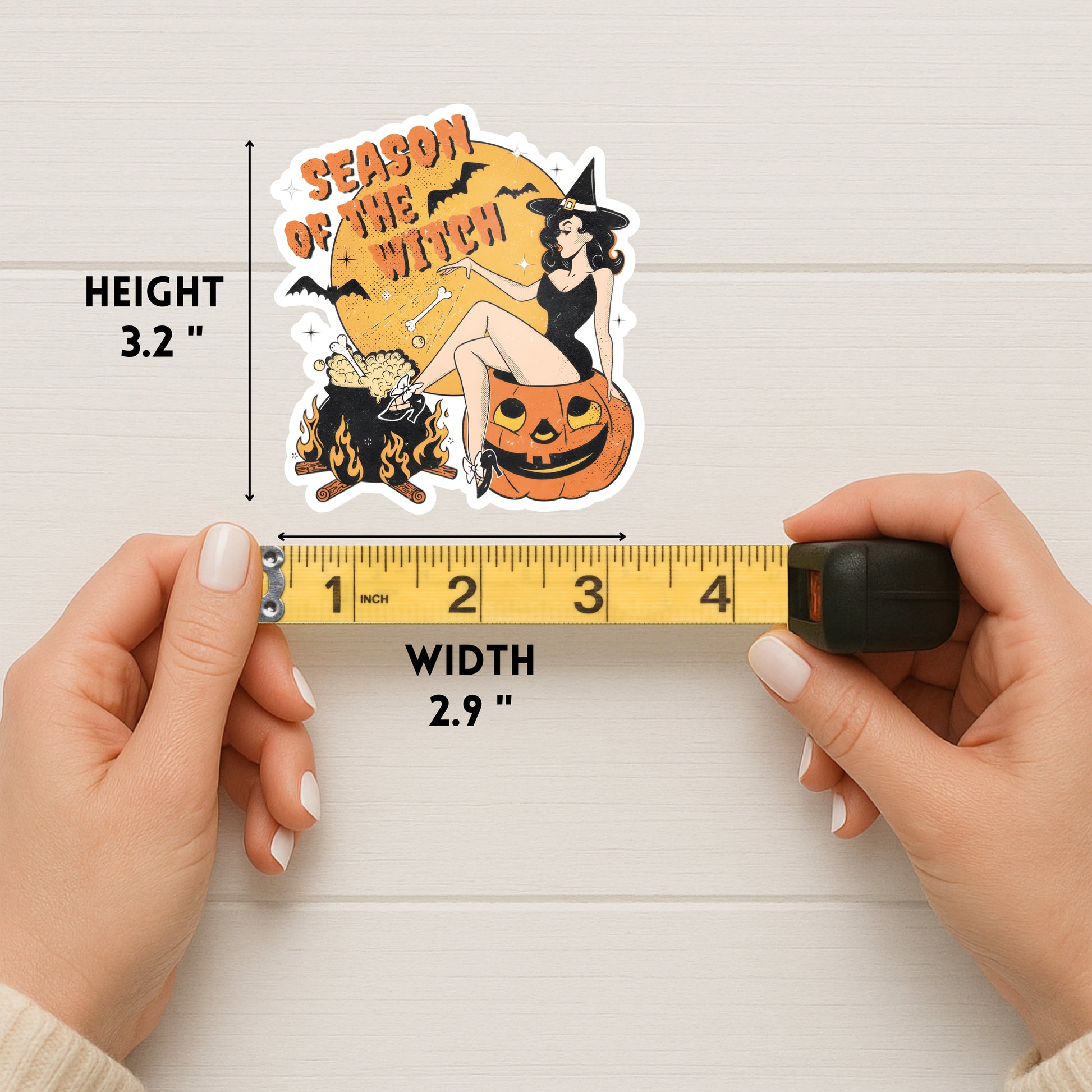 This handmade sticker features a Season of the Witch design, perfect for witchy souls, Halloween lovers, and fans of all things magical. A fun way to dress up your laptop, water bottle, or journal during spooky season (and beyond).