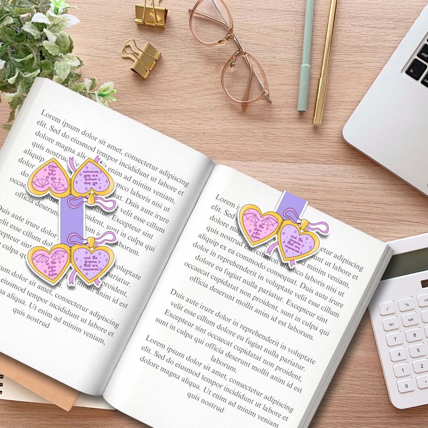 This completely handmade magnetic bookmark features a locket design with the phrase inside reading, “To the stars who listen and the dreams that are answered.” Perfect for dreamers and book lovers, this bookmark adds a whimsical and thoughtful touch to your reading experience. Printed on high-quality magnetic paper and sealed with an Avery clear laminating sheet, it is slim, lightweight, and beautifully unique.