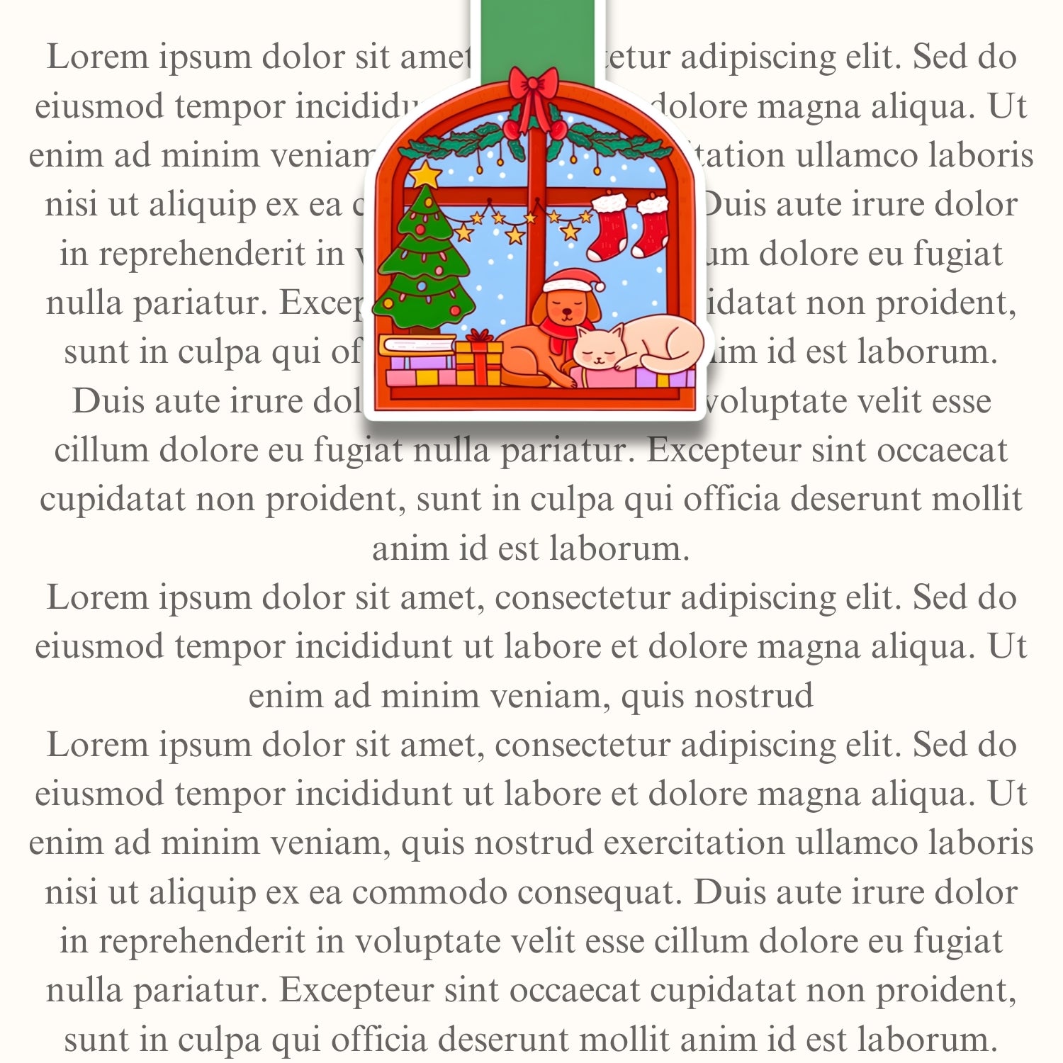 This handmade magnetic bookmark features a cozy Christmas window sill scene with a cat and dog cuddling together beside festive holiday décor. Warm lights, seasonal colors, and the peaceful winter atmosphere make this design perfect for holiday reading or gifting. Printed on high-quality magnetic paper and sealed with an Avery clear laminating sheet, this bookmark is slim, lightweight, and heartwarming for pet lovers and book lovers alike.